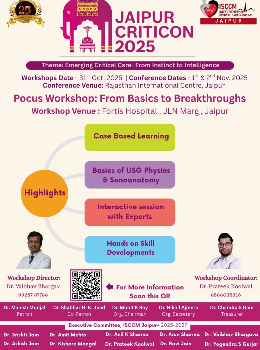 The Indian Society of Critical Care Medicine (ISCCM) Jaipur Branch is a community of critical care professionals dedicated to education, collaboration, and compassionate patient care in Rajasthan.